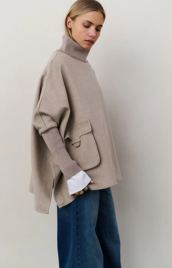 Wool Blend Poncho with Turtleneck
