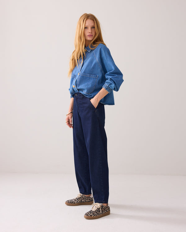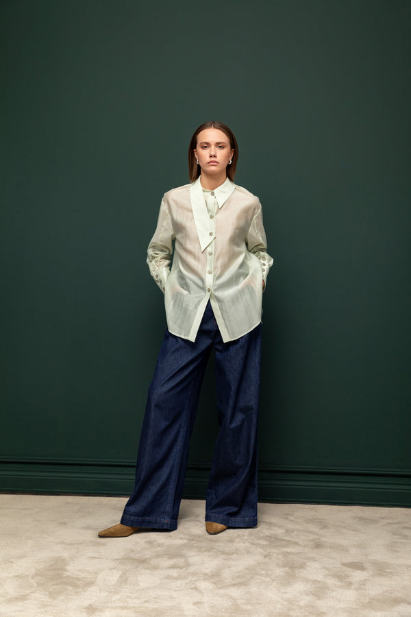 Long Sleeve Top with Woven Hem and Cuff Detail