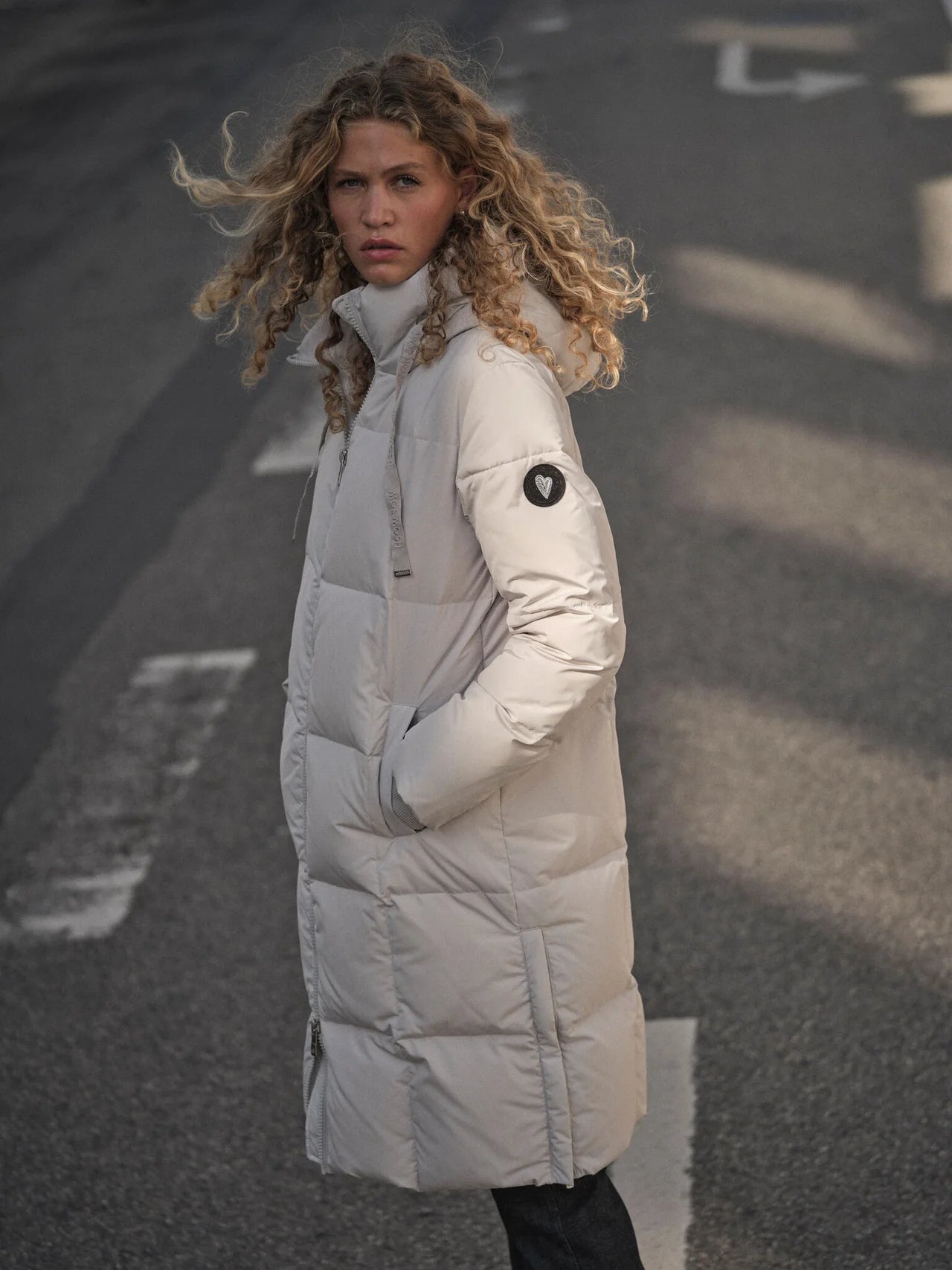 Stay warm in the chilling cold with this super lightweight, yet warm down coat. It has a long fit, hood, heavy zipper, and cool check quilted pattern, filled with responsibly sourced down. High practical collar and side slits, making the fit extra flexible.
