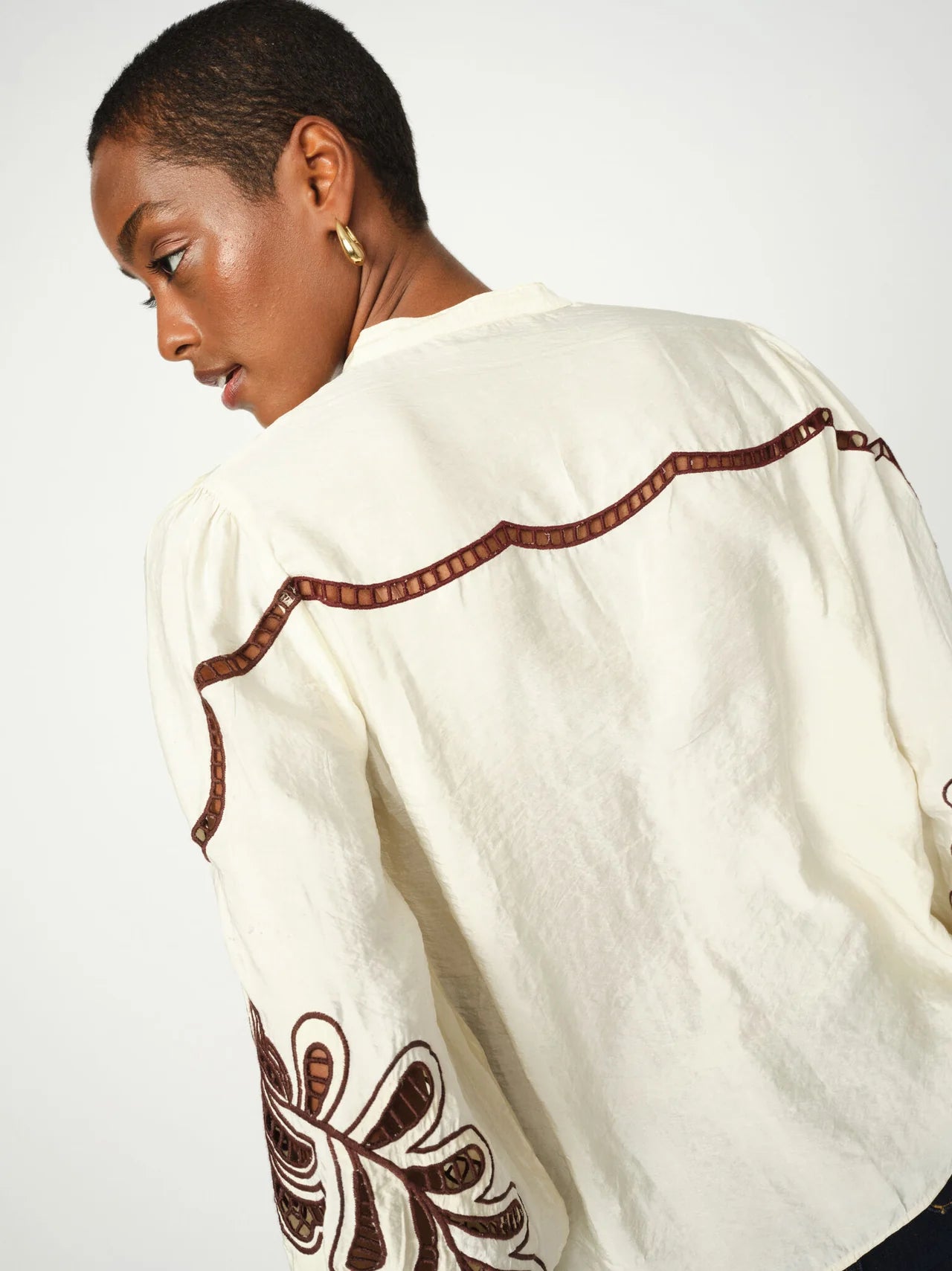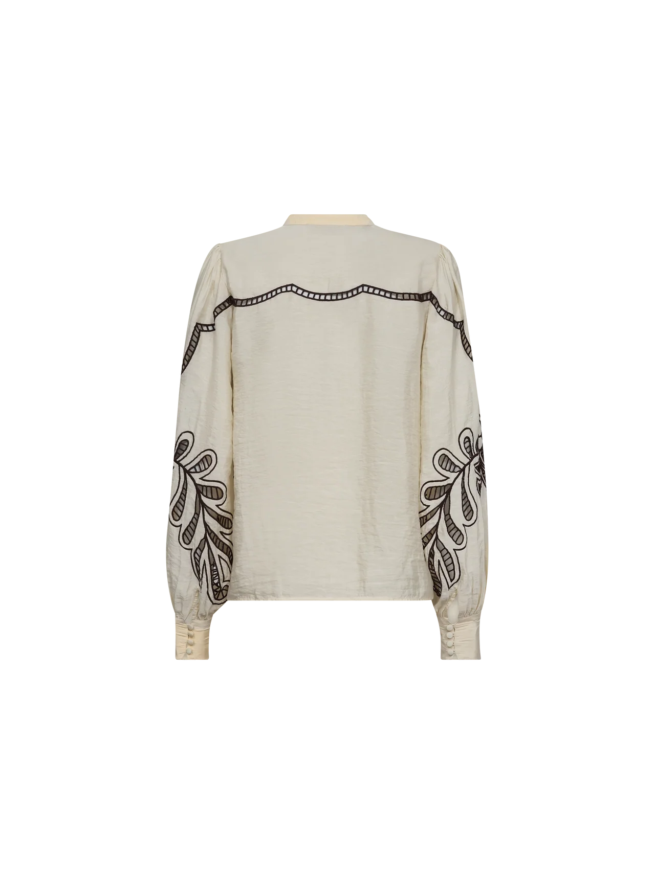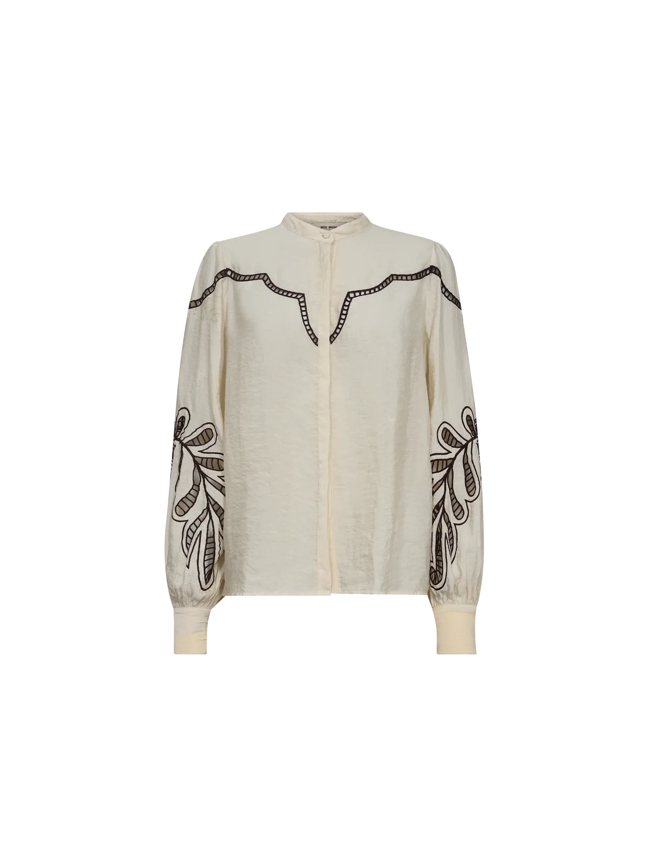 This elegant shirt is crafted in a regular fit, featuring a sophisticated standing collar and a concealed button closure for a clean and polished look. The striking contrast embroidery adds a unique and refined detail, making it a true wardrobe standout. Completed with buttoned cuffs, it pairs effortlessly with tailored trousers or denim for a stylish and versatile ensemble.