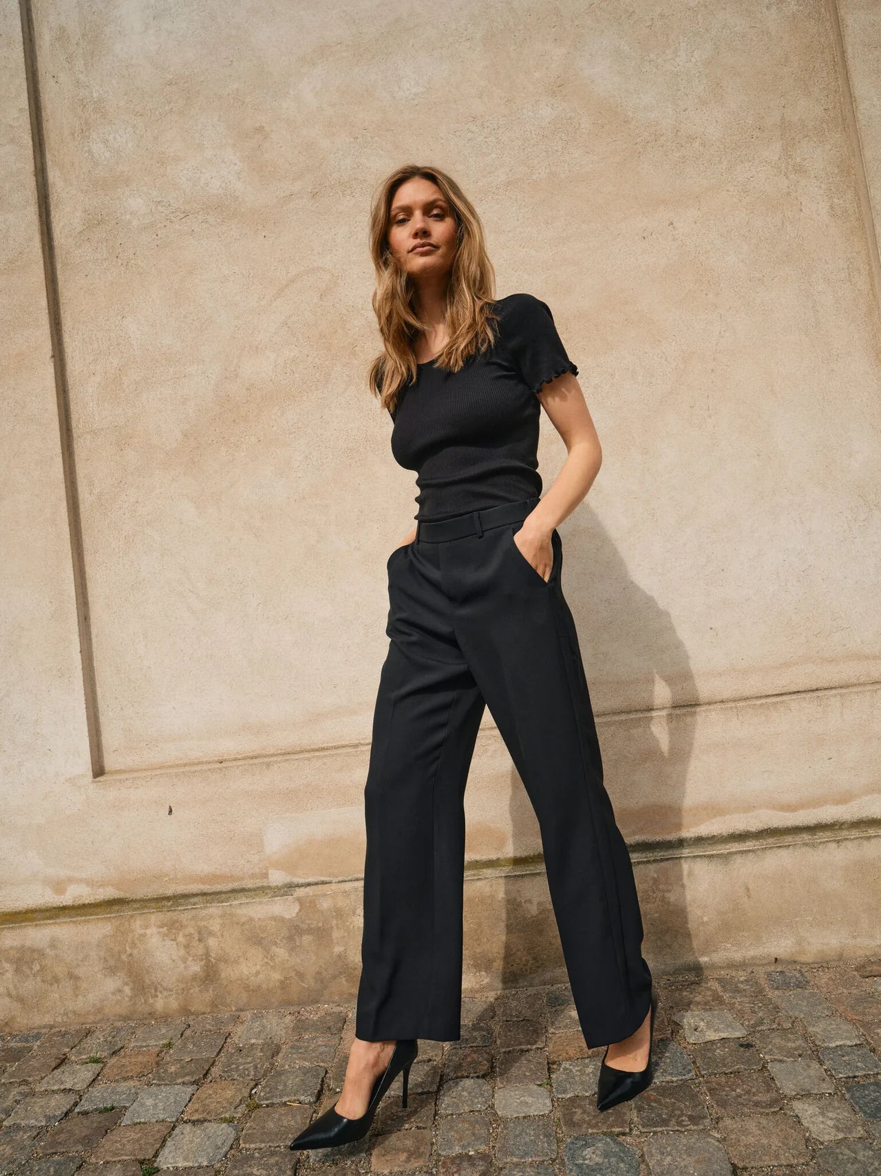 These timeless tailored pants are designed in a flattering straight fit with a mid/high-rise, offering both elegance and versatility. Detailed with pressed creases and a concealed zipper for a polished finish. Pair them with a feminine blouse and the matching blazer for a refined, sophisticated look.