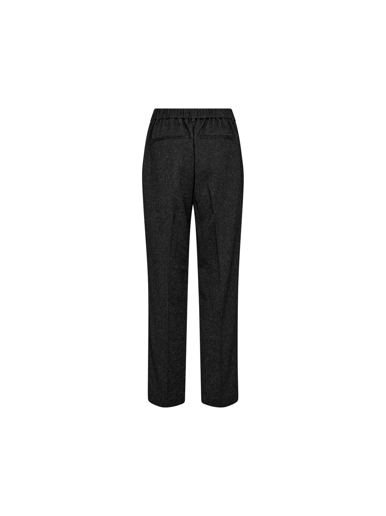 These stylish tailored pants are designed in a regular fit with a flattering mid-rise for effortless elegance. Featuring an elasticated waistband, pressed creases, belt loops, and subtle pleats at the back, they offer both structure and comfort. Style them with a crisp shirt for a polished look or a statement tee for a more relaxed yet refined outfit.