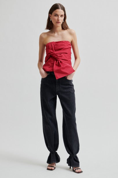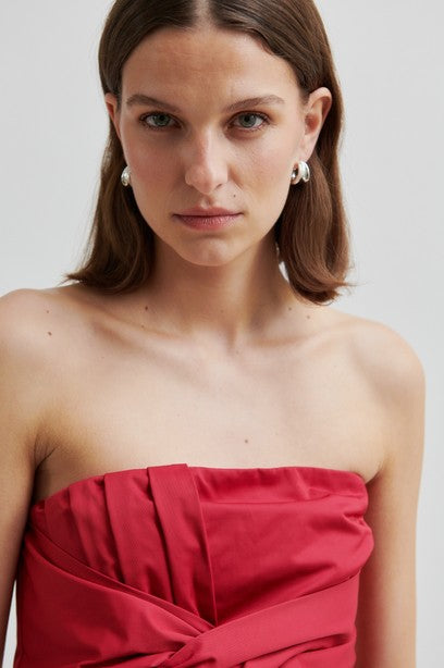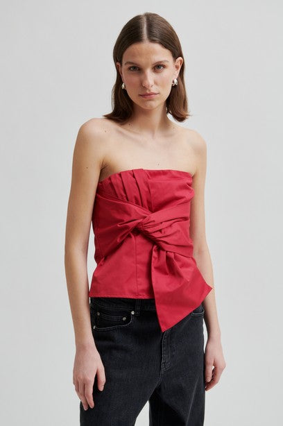 Second Female strapless bow top. The top is made in a soft, smooth cotton blend. Featuring A side zip fastening and elasticated section at the back. Large bow detail at the front. Non-slip silicone lining inside bust. Slim fit.