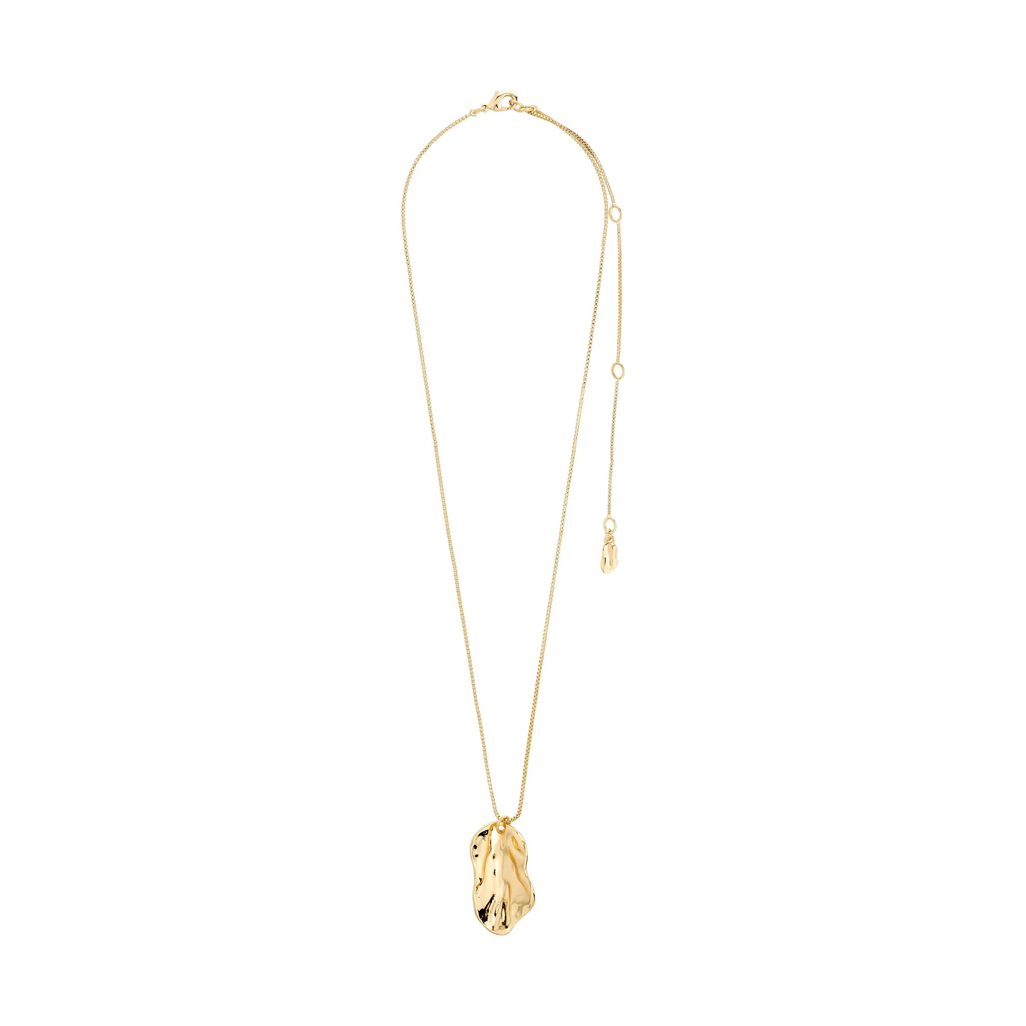 Cherish all shapes of nature! The gold-plated ECLIPSE necklace from Pilgrim combines raw nature with an urban edge. It features a slim curb chain adorned with an organic leaf pendant, boasting a stunning wavy finish that plays with the light and adds an extra dimension to your look. Ideal for those seeking jewellery that exudes a handcrafted essence and personality. Match the chain with an oversized shirt and denim shorts for a relaxed, trendy vibe perfect for summer '25. The necklace is 40 cm long with a 12 cm extension chain, made from 99% recycled materials mindful of the environment.