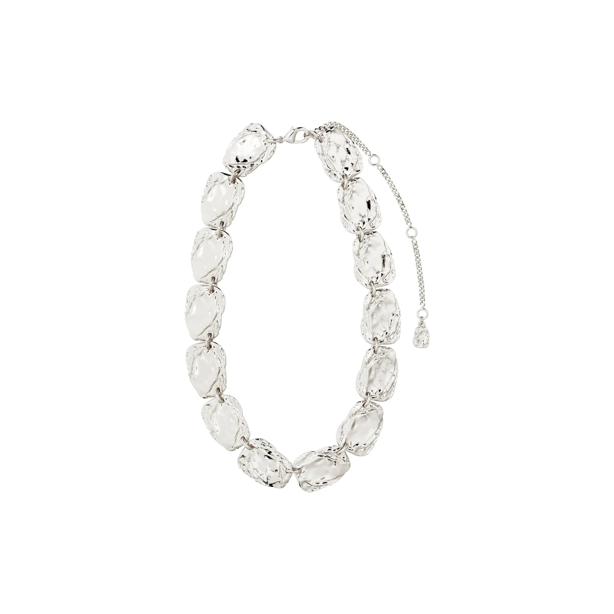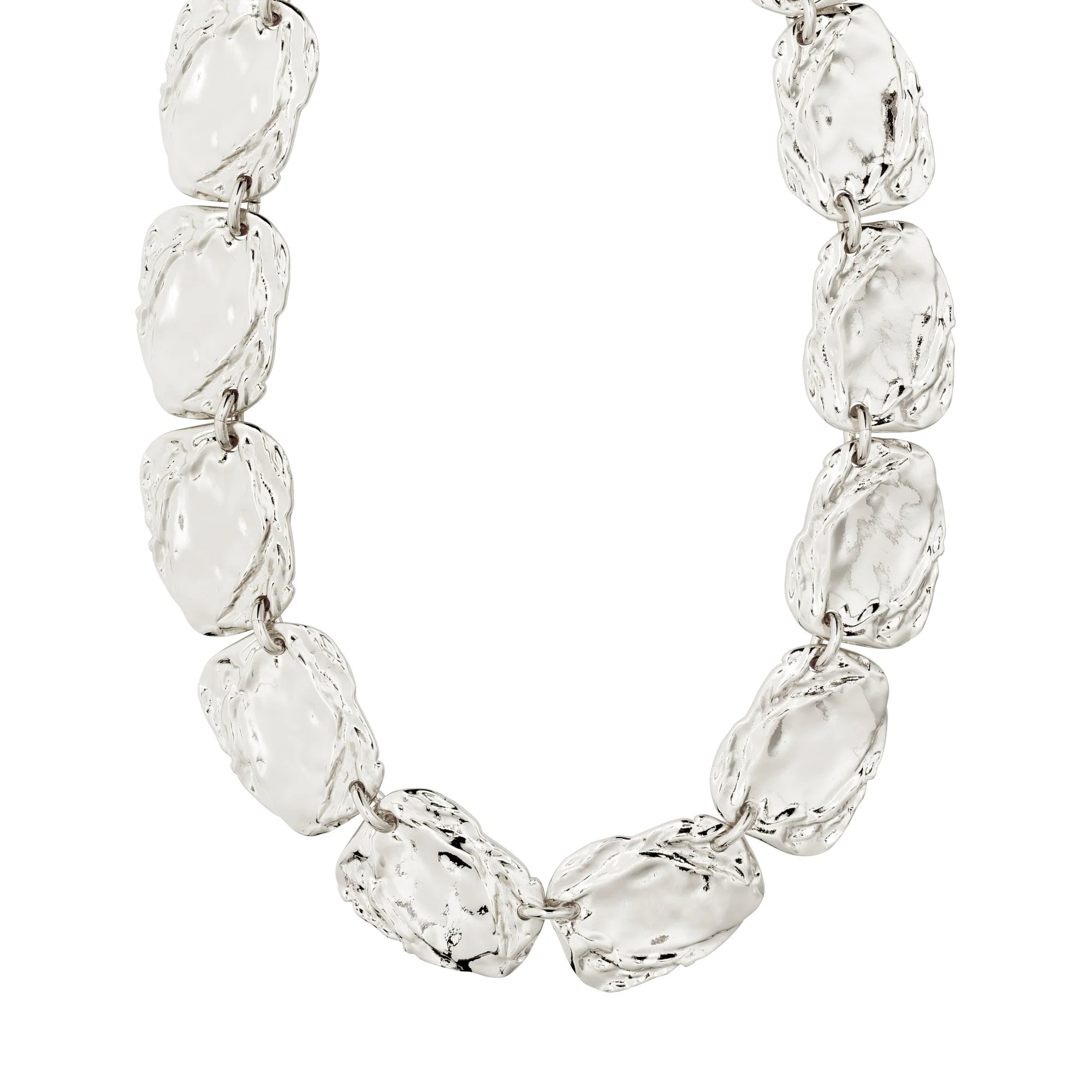 SHIFT your style, own the moment! With the silver-plated SHIFT necklace from Pilgrim, you get this season's statement accessory! The eye-catching design of the chain has a unique rustic character and is made from flat coins that beautifully drape around your neck to give you a confident on-point look. Perfect for both glam nights and casual layering. Style it with a flowy maxi dress and chunky boots for the ultimate balance between bohemian and urban edge. The necklace measures 38 cm + 12 cm extension chain and is made from 99% recycled material – it's fashion with thoughtfulness!